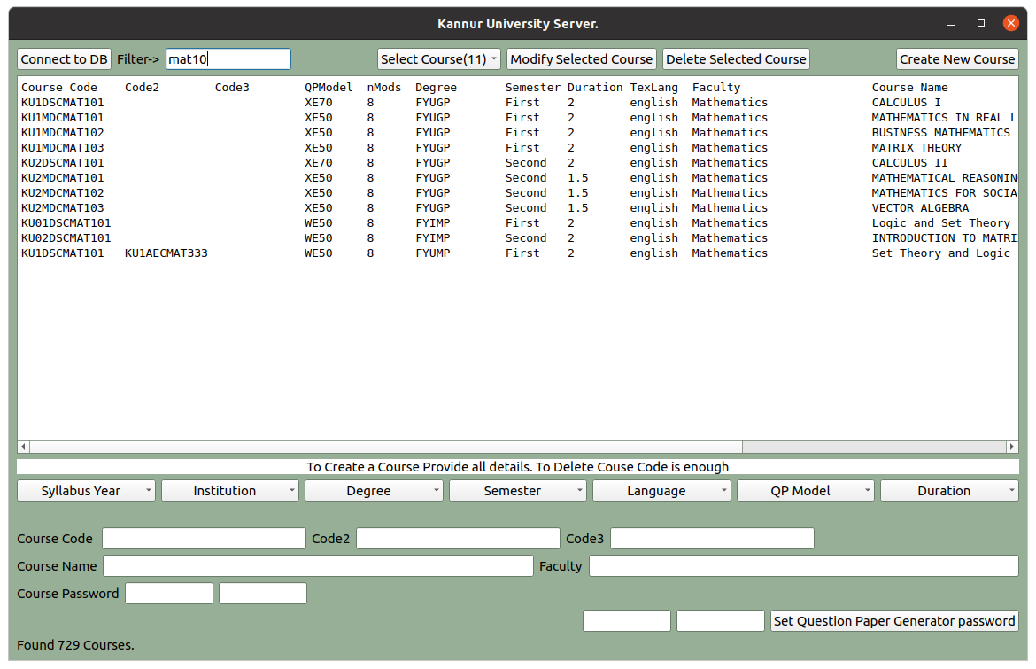 A GUI program is also provided for Creating/Editing/Deleting Courses. The following details need to be provided while creating a new course.