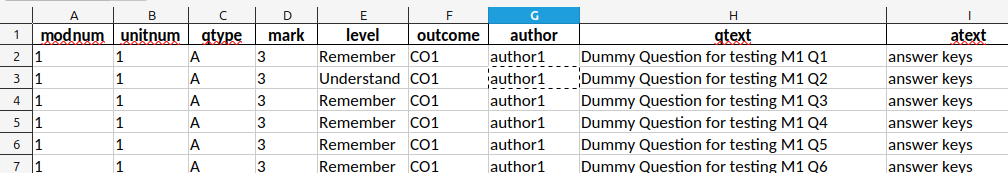 The questions are prepared in an Excel file, as shown below: Download s Sample Excel file and the corresponding Info file.